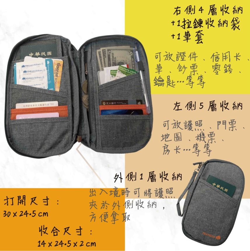 ‧多層次收納袋 + 鈔票夾 + 拉鍊收納袋
