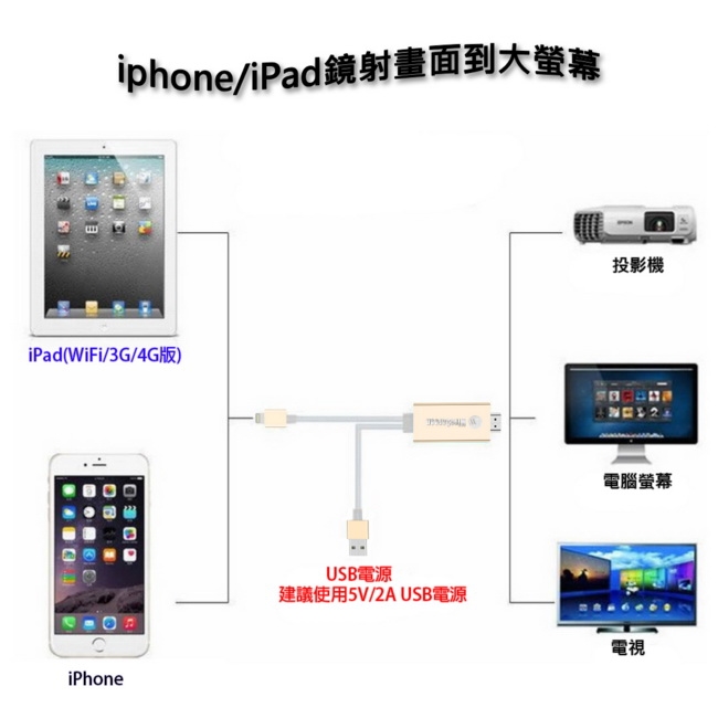 1. 本產品適用所有具有Lightning(8Pin)插孔的iPhone/iPad。