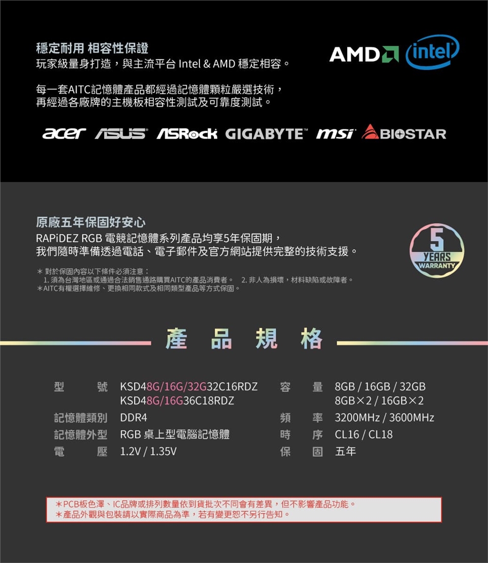 ✔本商品在非人為因素下,自購買日起SSD保固五年、Module終身保固、RGB系列五年保固。