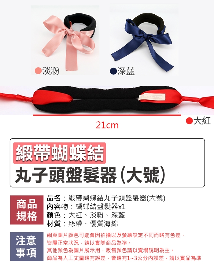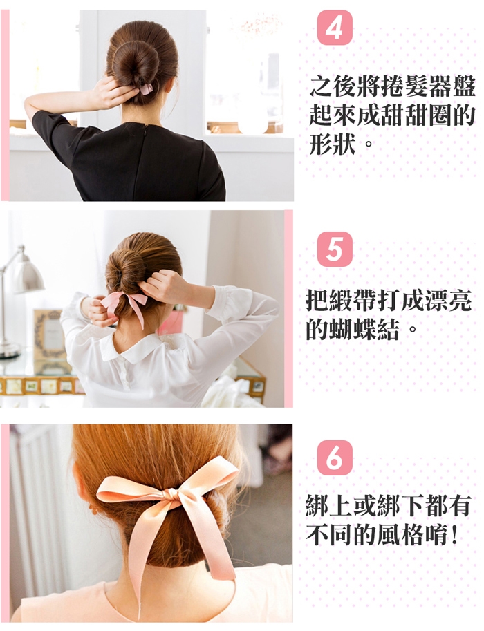 ◆ 商品名稱:緞帶蝴蝶結丸子頭盤髮器(大號)3入組