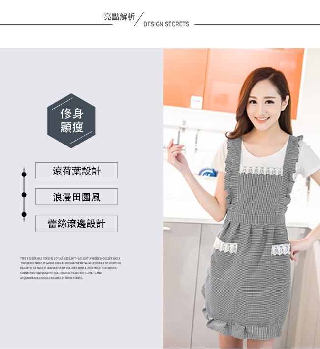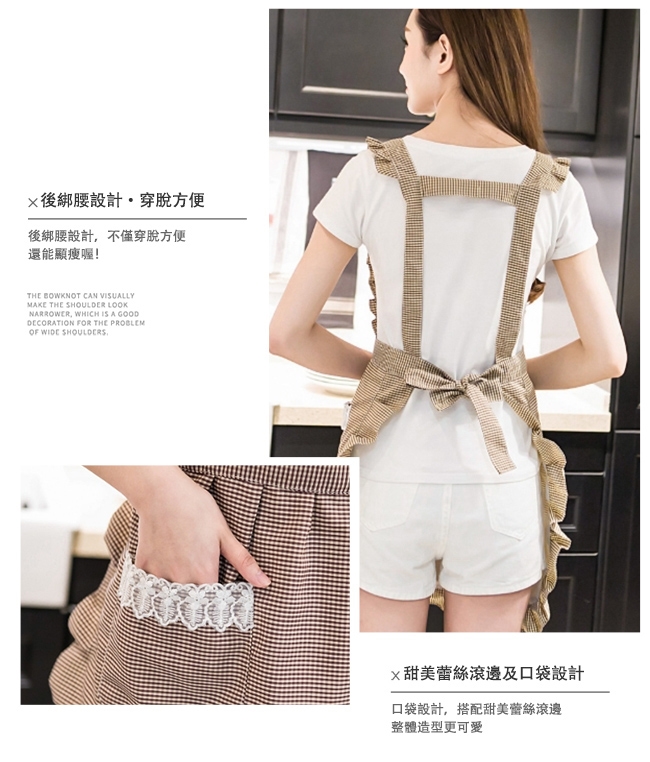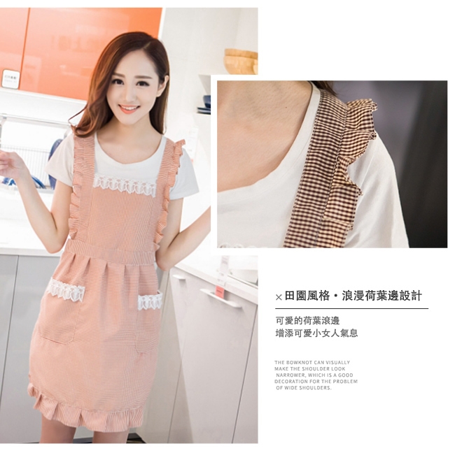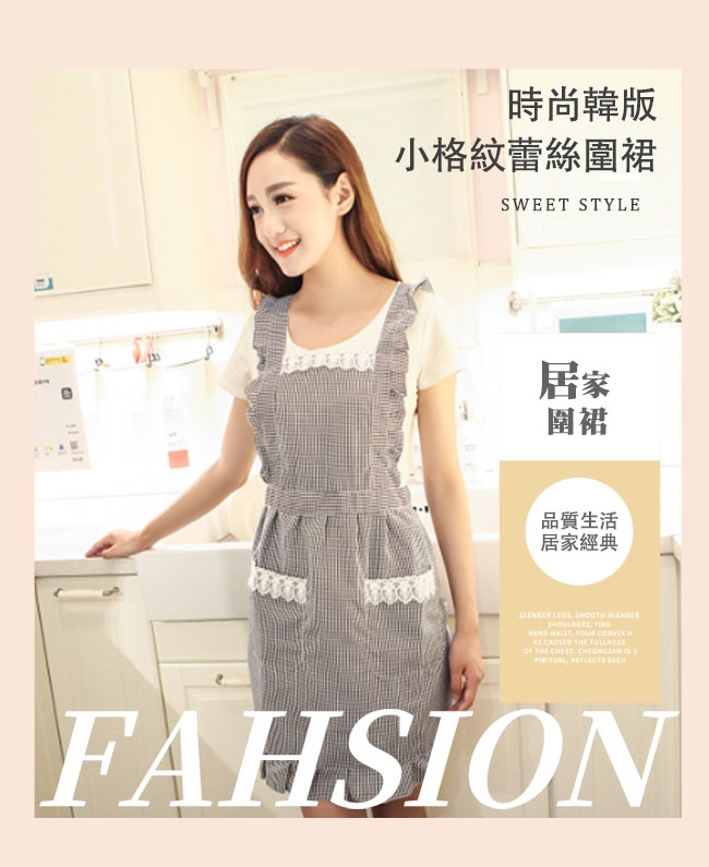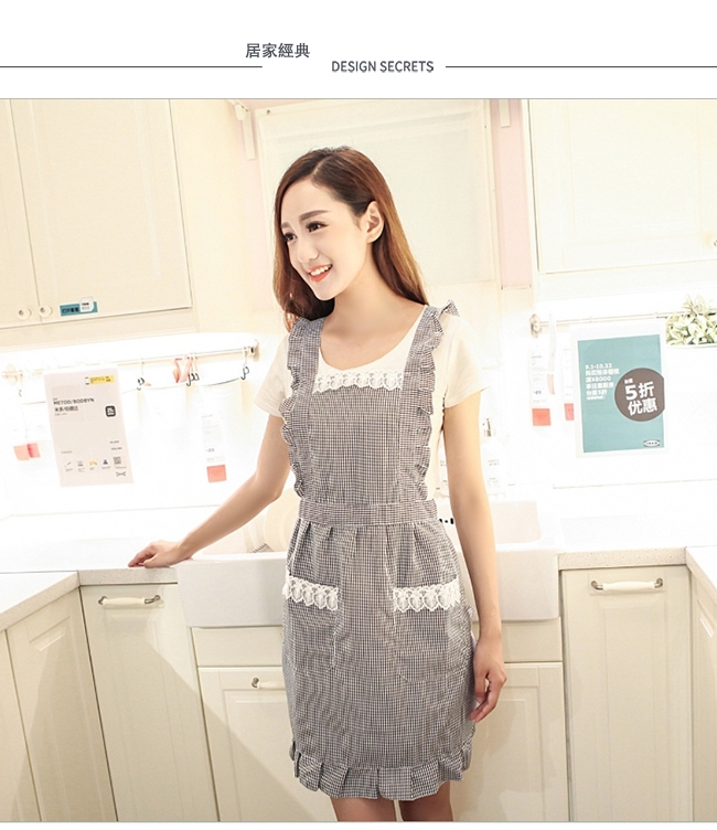 產品名稱:時尚韓版小格紋蕾絲圍裙