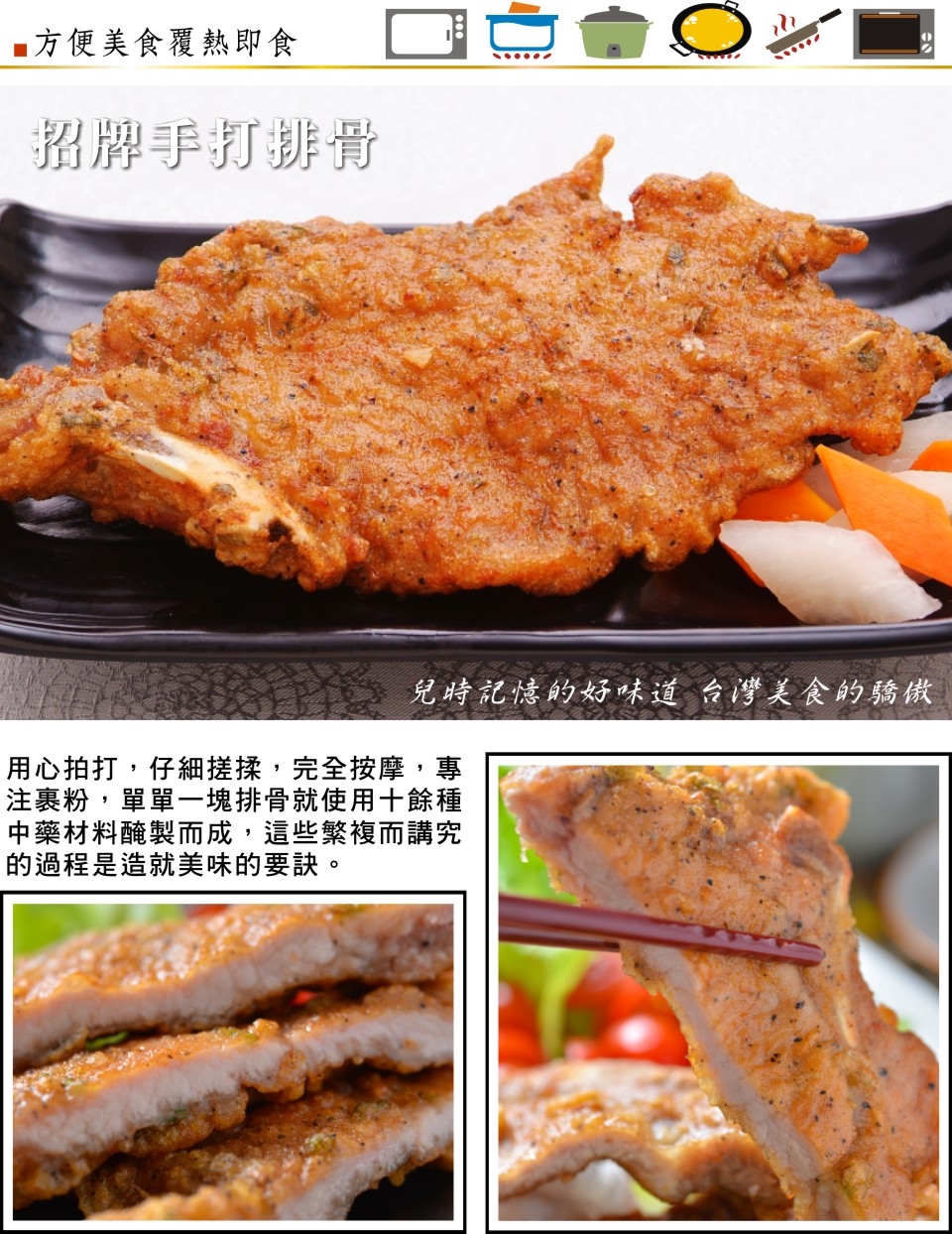 料理方式:將厚工手感玩味排骨冷藏解凍後,可依以下建議方式料理