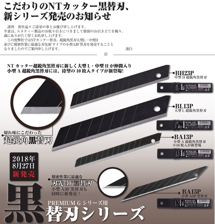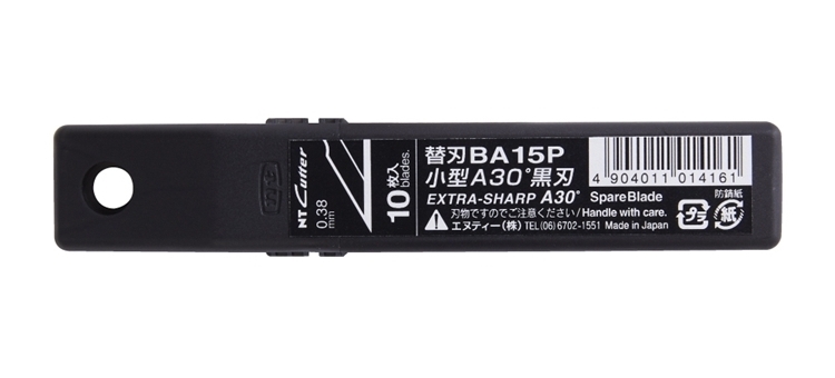 ●【品名】日本製造NT Cutter Premium 2A型美工刀用替刃BA15P(10片入,30°高碳鋼黑刃,刃厚0.38mm)