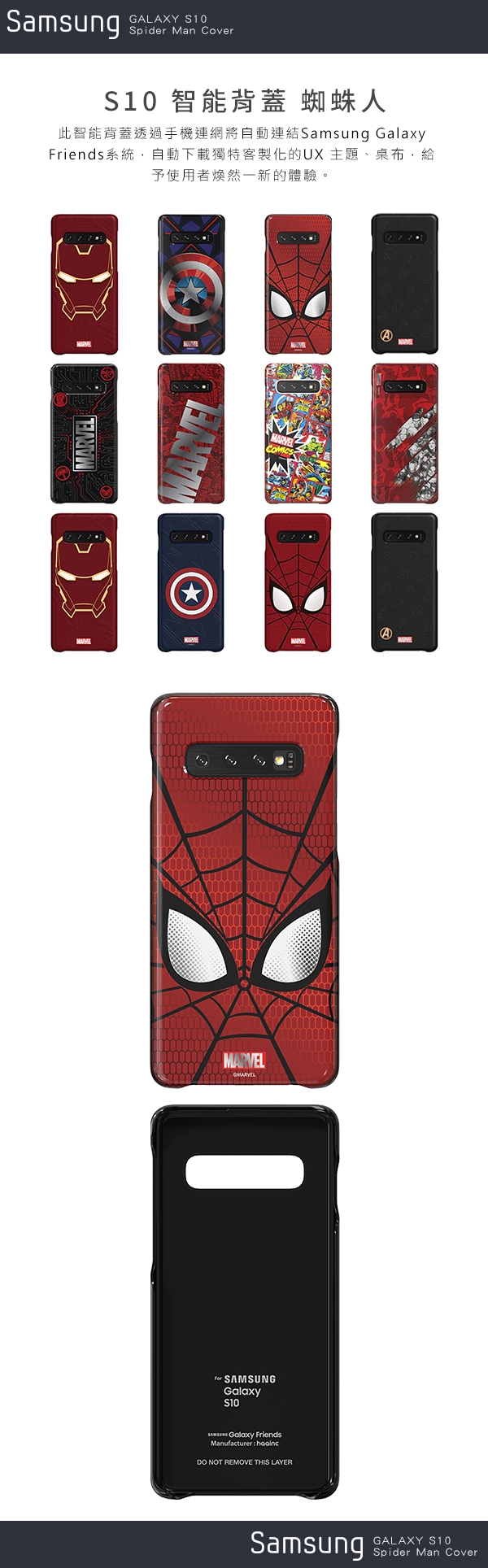 本賣場為買一送一賣場,凡購買SAMSUNG GALAXY S10 原廠智能背蓋 蜘蛛人,出貨即贈送同一色系背蓋。