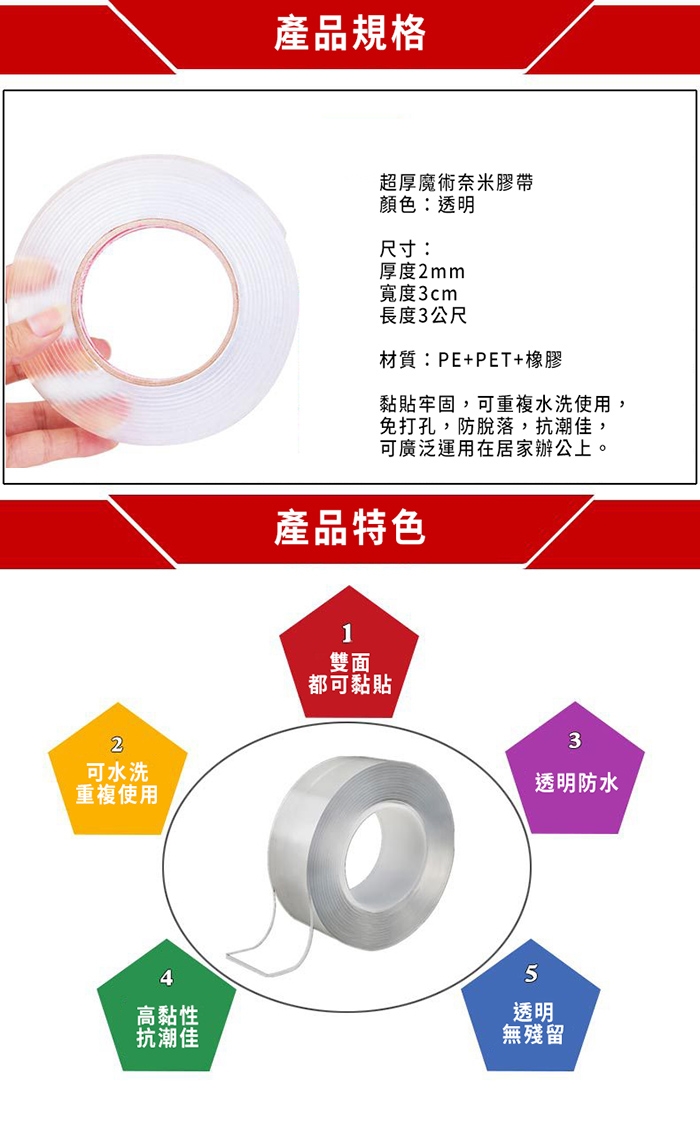 寬3cm 超厚魔術奈米萬用透明防水雙面膠帶(2捲)
