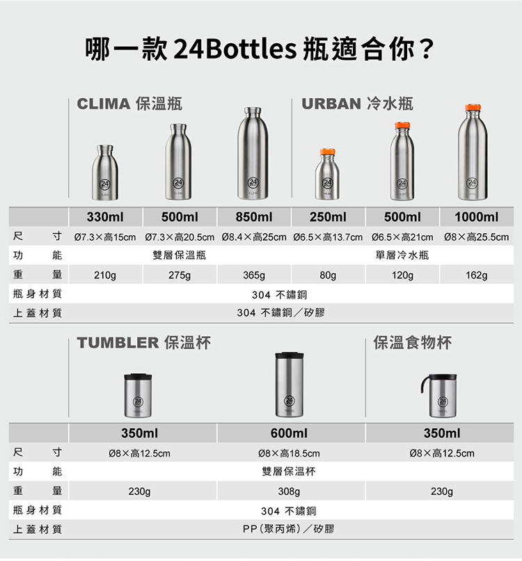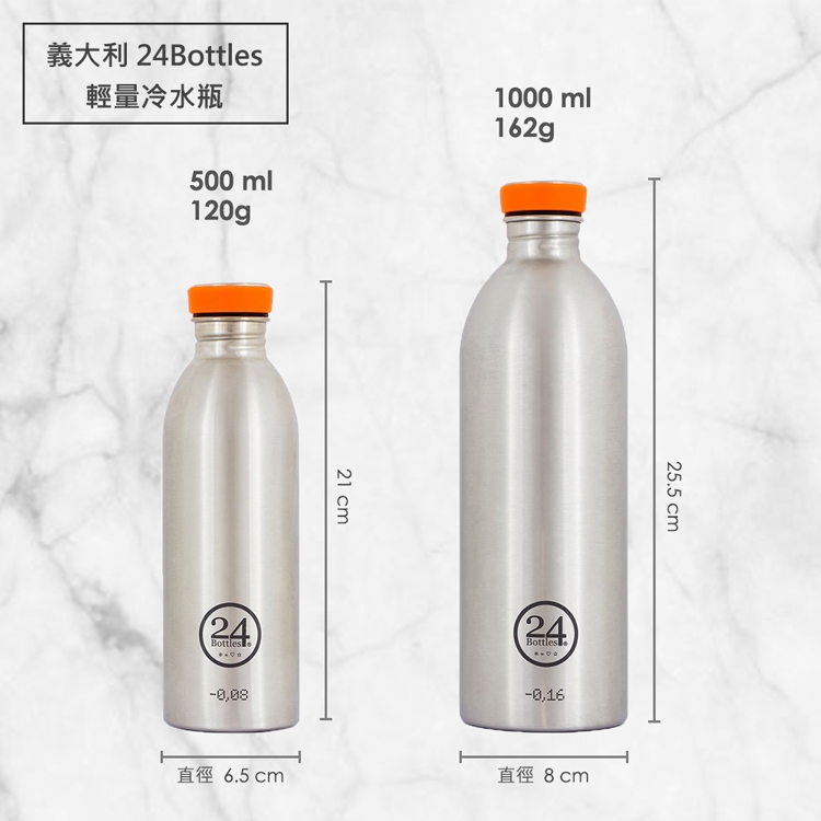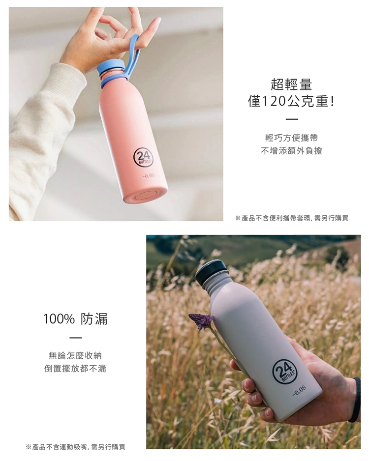 24Bottles輕量冷水瓶僅120 公克重,輕鬆隨身無負擔,100%防漏設計讓您就算是倒置收納都能安心。