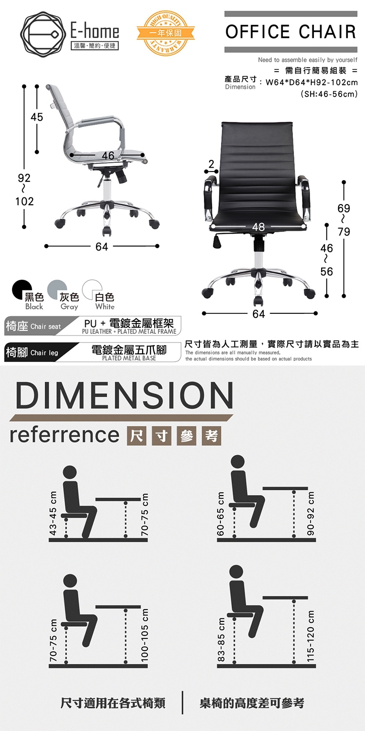 產品尺寸:W64*D64*H92-102 cm (SH:46-56 cm)