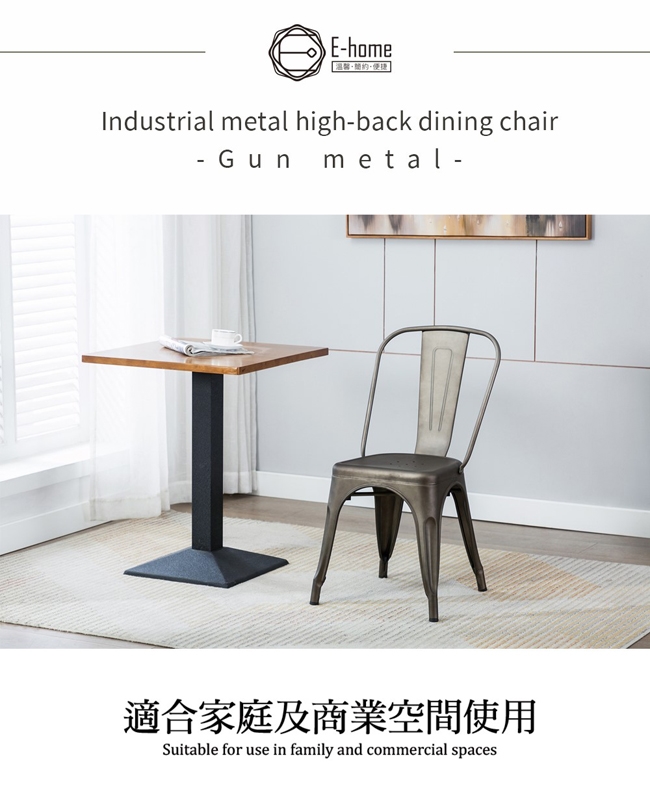 [E-home]Sidney希德尼工業風金屬高背餐椅無論從您的餐廳到陽光明媚的陽台都非常搭配。