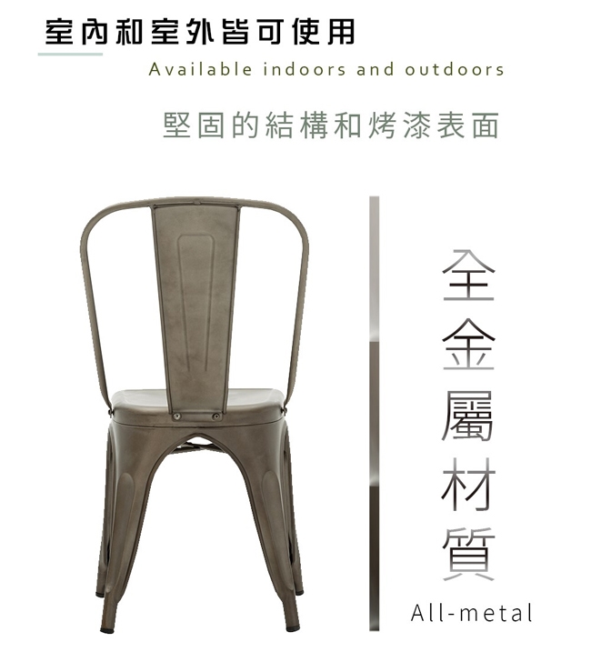 全金屬材質,堅固的結構和烤漆表面,室內和室外皆可使用,室外擺放時建議保持乾燥。