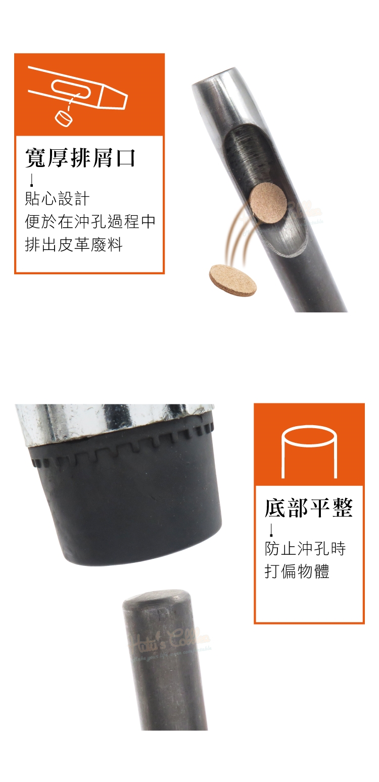 4.寬厚排屑口:貼心設計,便於在沖孔過程中排出皮革廢料