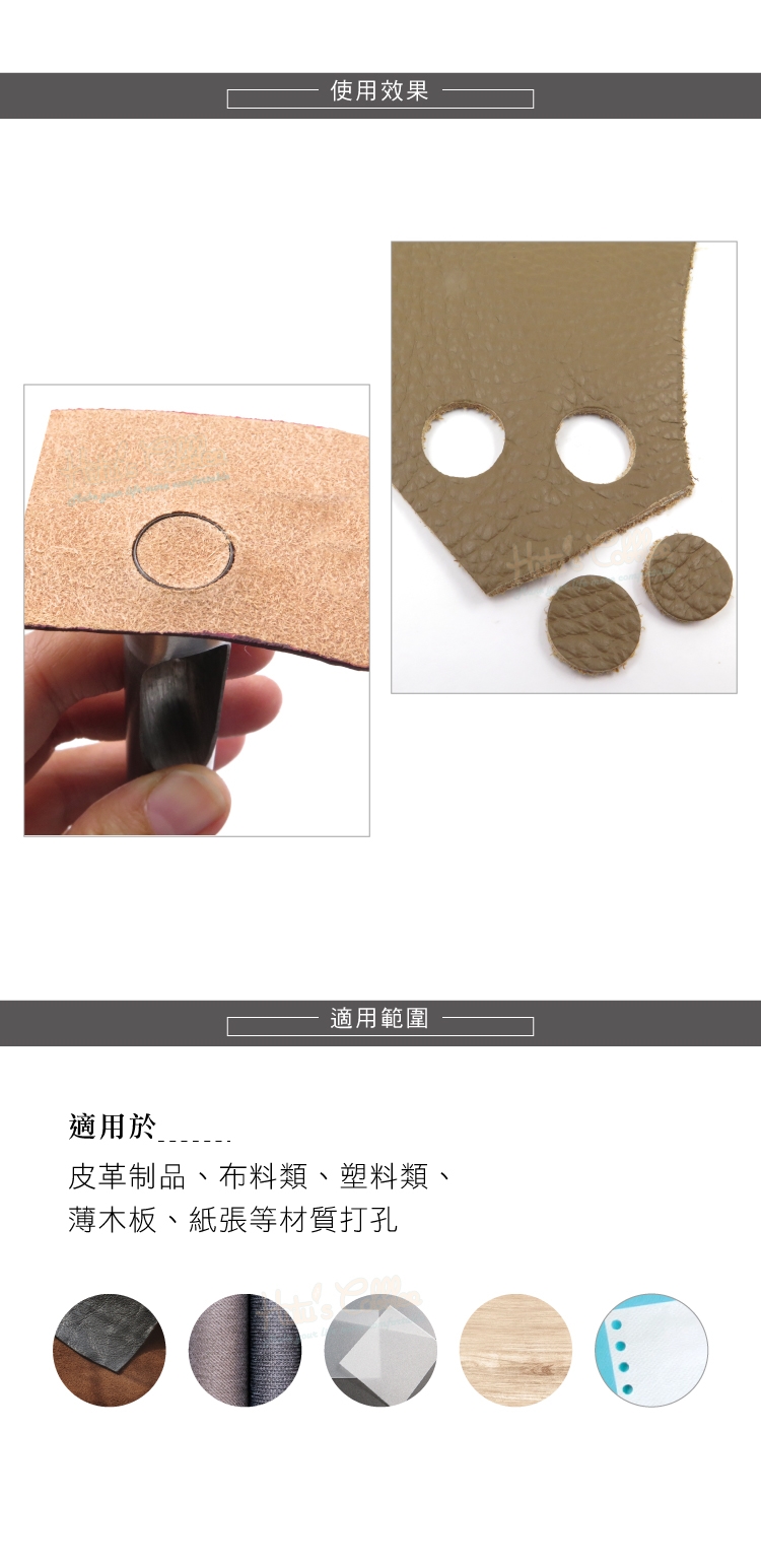 適用於皮革制品、布料類、塑料類、薄木板、紙張等材質打孔