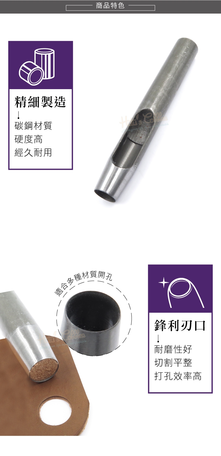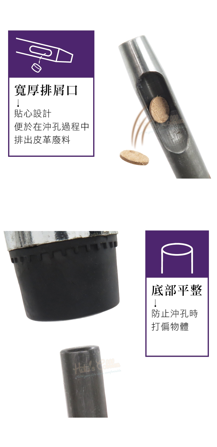 4.寬厚排屑口:貼心設計,便於在沖孔過程中排出皮革廢料