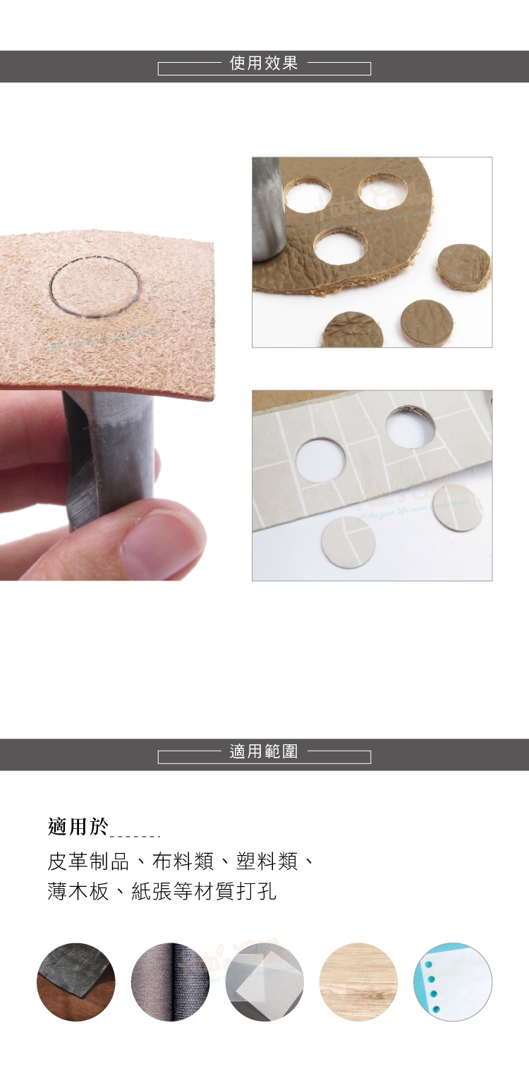 適用於皮革制品、布料類、塑料類、薄木板、紙張等材質打孔