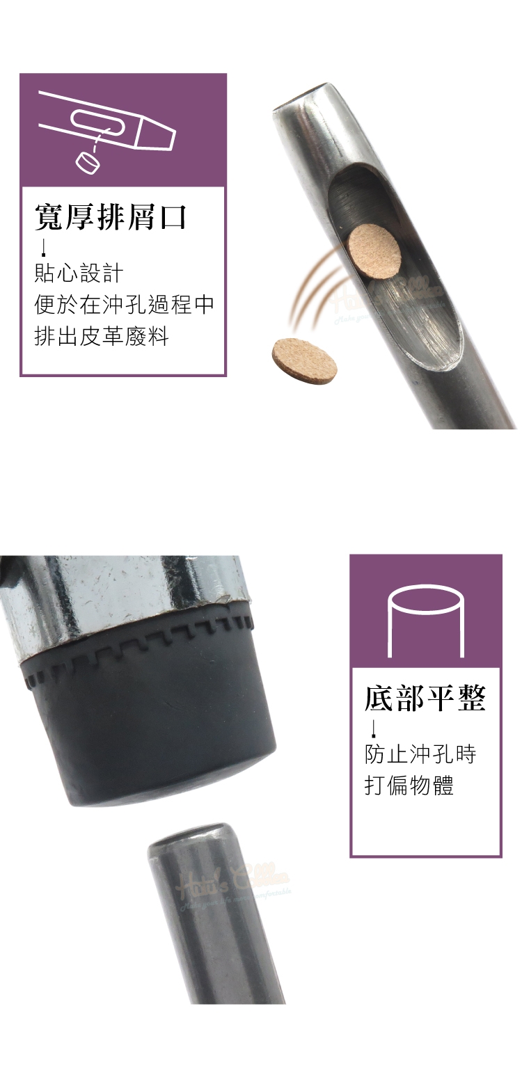 4.寬厚排屑口:貼心設計,便於在沖孔過程中排出皮革廢料