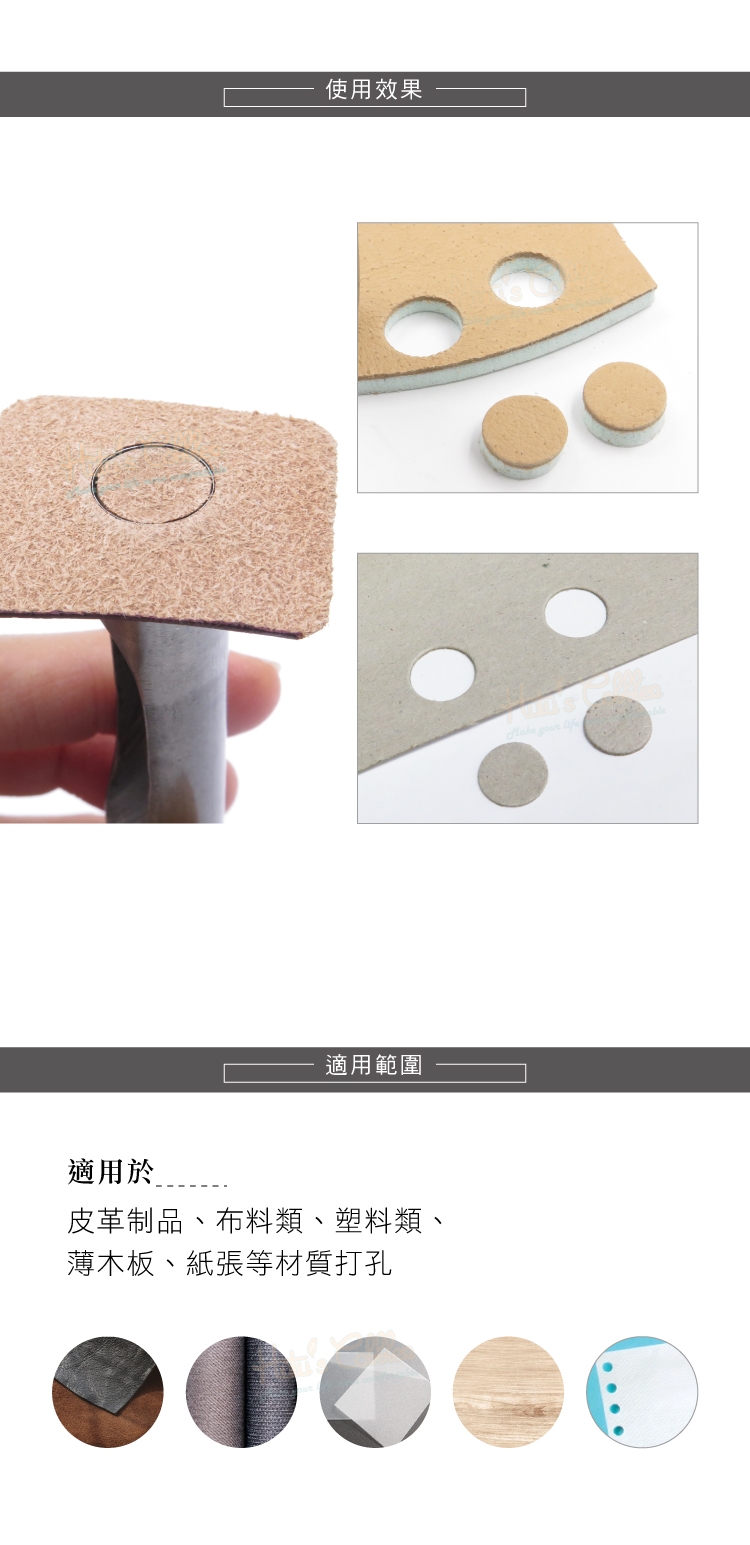 適用於皮革制品、布料類、塑料類、薄木板、紙張等材質打孔