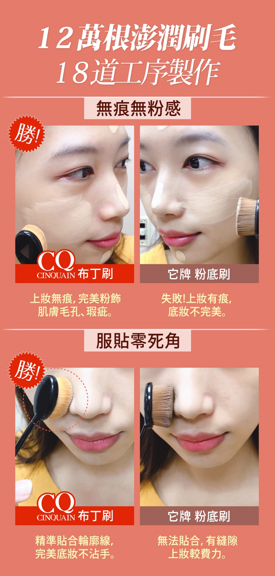 於臉部清潔基礎保養後,取適量粉底於臉上後,使用思珂布丁刷均勻塗抹於全臉即可。