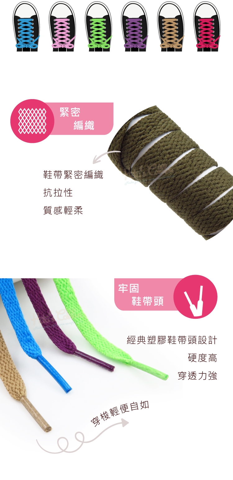 3.緊密編織:鞋帶緊密編織、抗拉性、質感輕柔