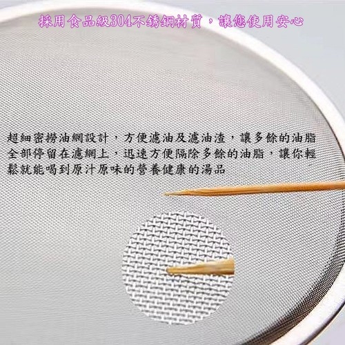 脂肪囤積起來。所以很有必要喝湯前將上面的一層油撈出來,此時精密不鏽鋼網篩可以將油