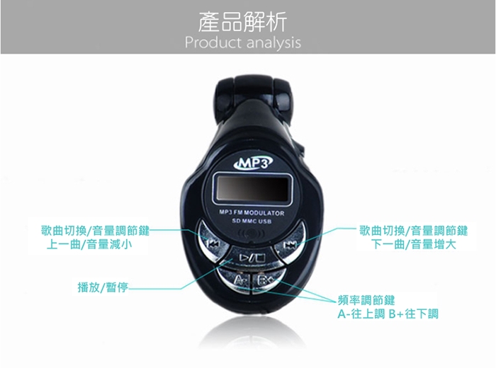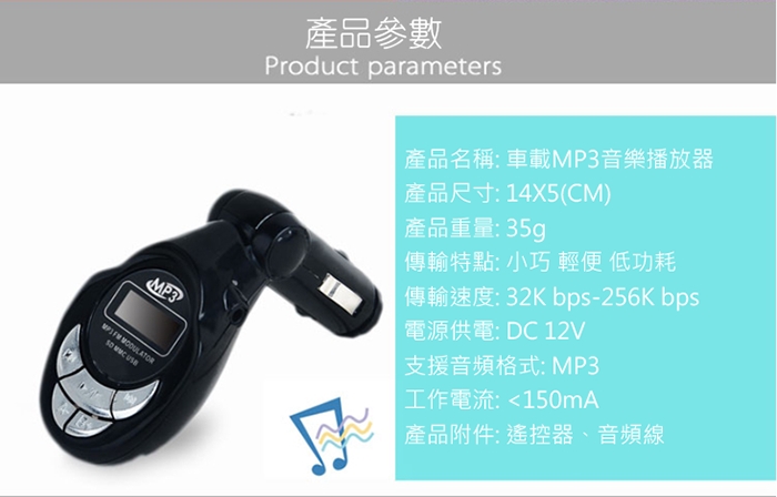 此車用MP3轉換器為插卡式,無內建記憶體容量,無法直接將MP3格式音樂存入主機內,需插入SD卡或USB隨身碟後才可播放