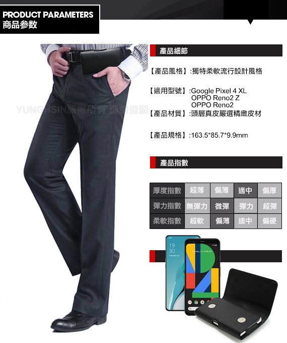 CITY for Google Pixel4 XL / OPPO Reno2 Z / OPPO Reno2 精品真皮橫式腰掛皮套