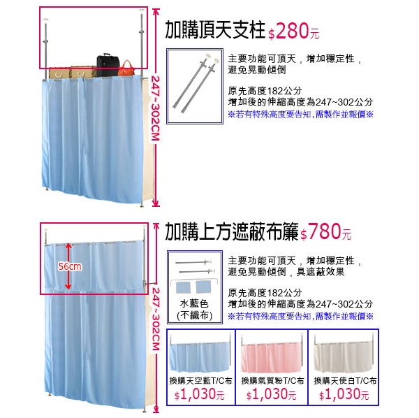 3.可加購頂天支柱,可增加商品穩定性,避免晃動傾倒。