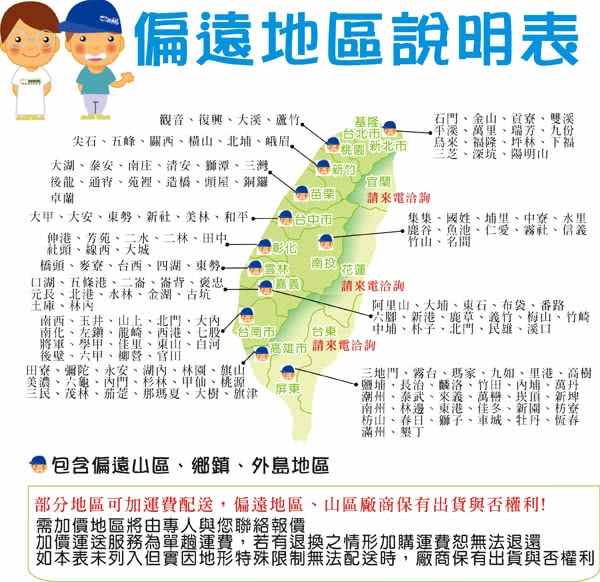 -偏遠地區及山區另外報價 (依出貨廠商報價為主)。