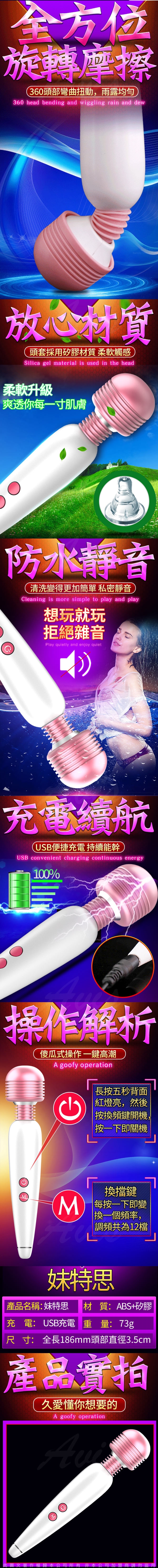 .商品功能:妹特思 12頻強力充電 AV女優按摩棒