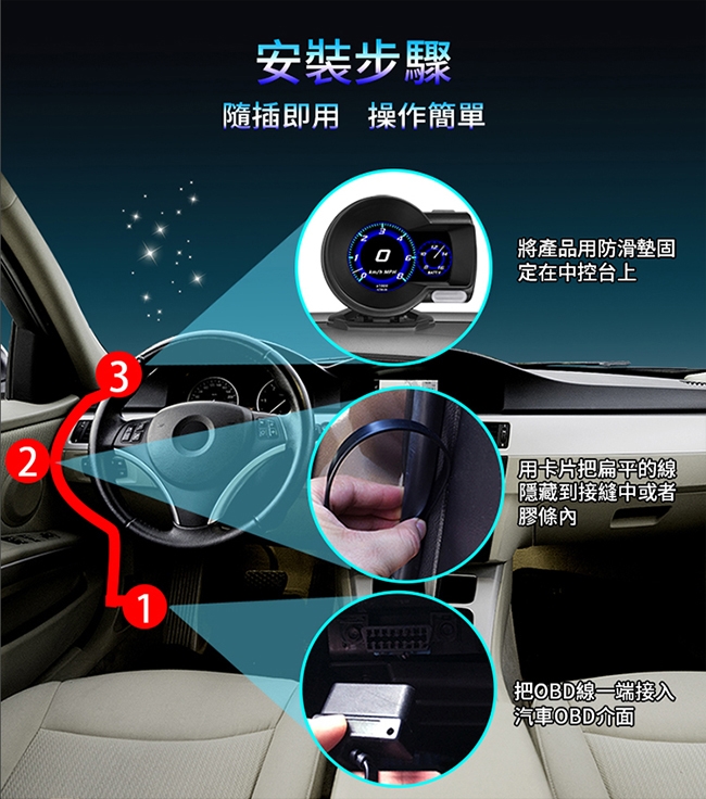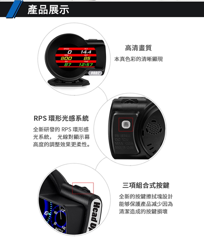 野不轉移的條件下瞬間讀取行駛資訊,讓駕駛員始終保持最佳行駛狀態。