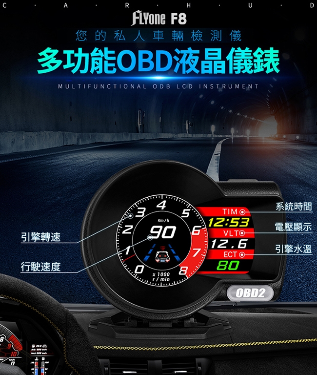FLYone F8 液晶儀錶OBD2行車電腦 HUD抬頭顯示器