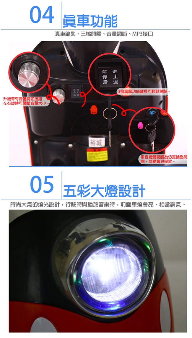 PS:本賣場之兒童遙控電動汽車運送費用在偏遠地區200元,東部地方(宜蘭.台東.花蓮.屏東地區250元),外島(金門.澎湖.離島地區400元),因寄送運費較貴,運費另計(也因物件較大)
