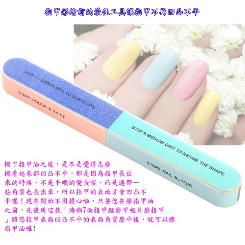始不用擔心啦,只要您在擦指甲油之前,先使用這款「海棉7面指甲銼磨甲板片磨指甲」