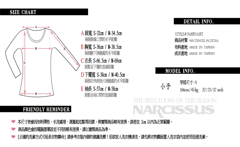 A. 本尺寸表會因布料彈性, 水洗處理, 測量起迄點等因素, 與實際商品略有