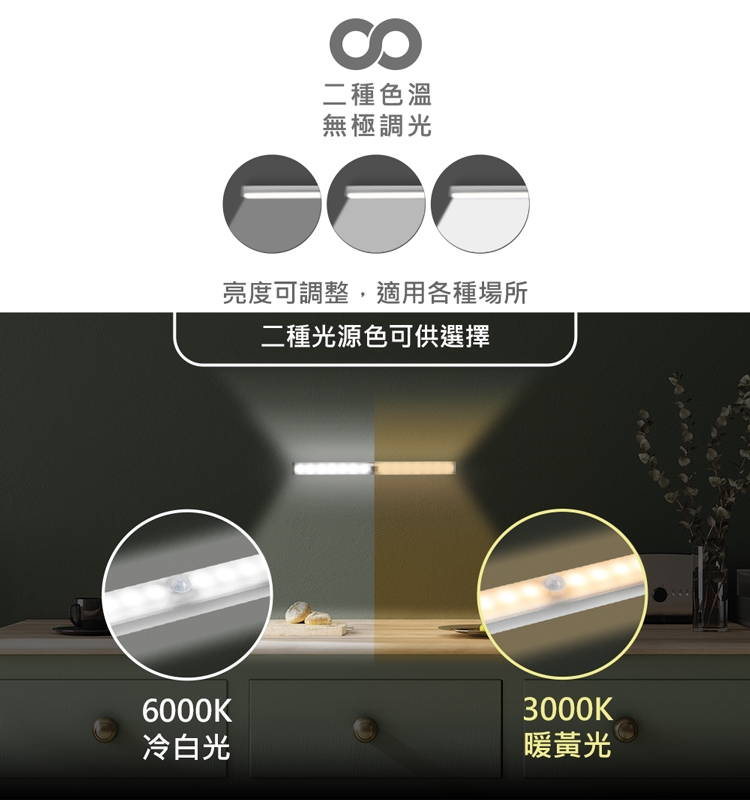 四種模式可設定,使用方式無限靈活,擁有冷白光/暖黃光供選擇,
