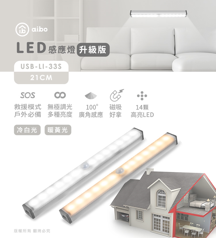 aibo 升級版多功能 USB充電磁吸式 21cmLED感應燈管(LI-33S)
