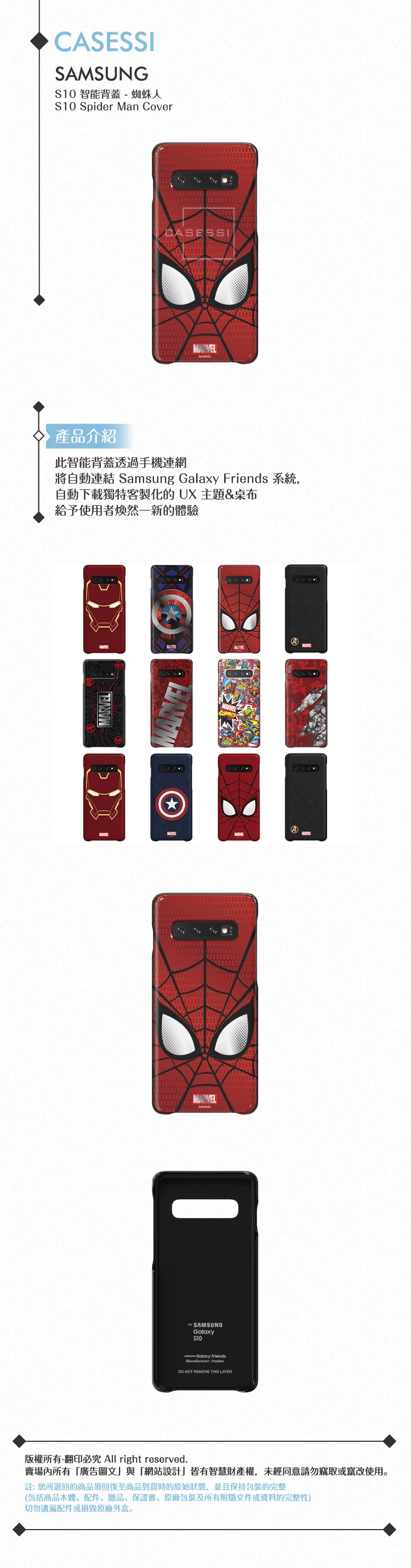 本賣場商品Samsung三星 原廠Galaxy S10 G973專用 智能背蓋 蜘蛛人,為買一送一賣場,凡購買即出貨贈送同一色系背蓋。