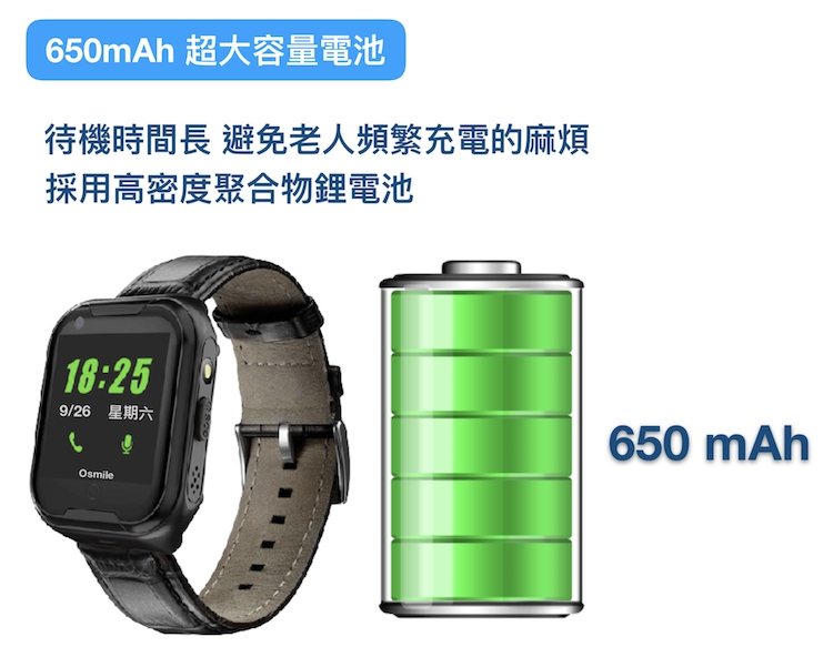 Osmile ED1000 手錶不使用時, 至少兩天充一次電能延長電池使用壽命