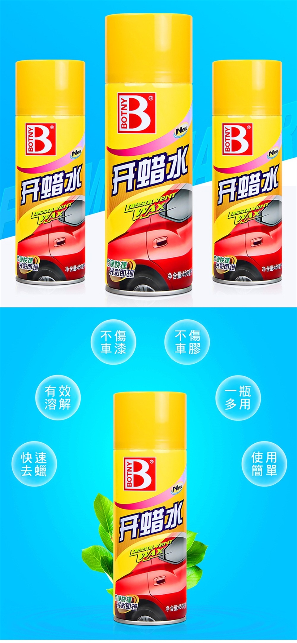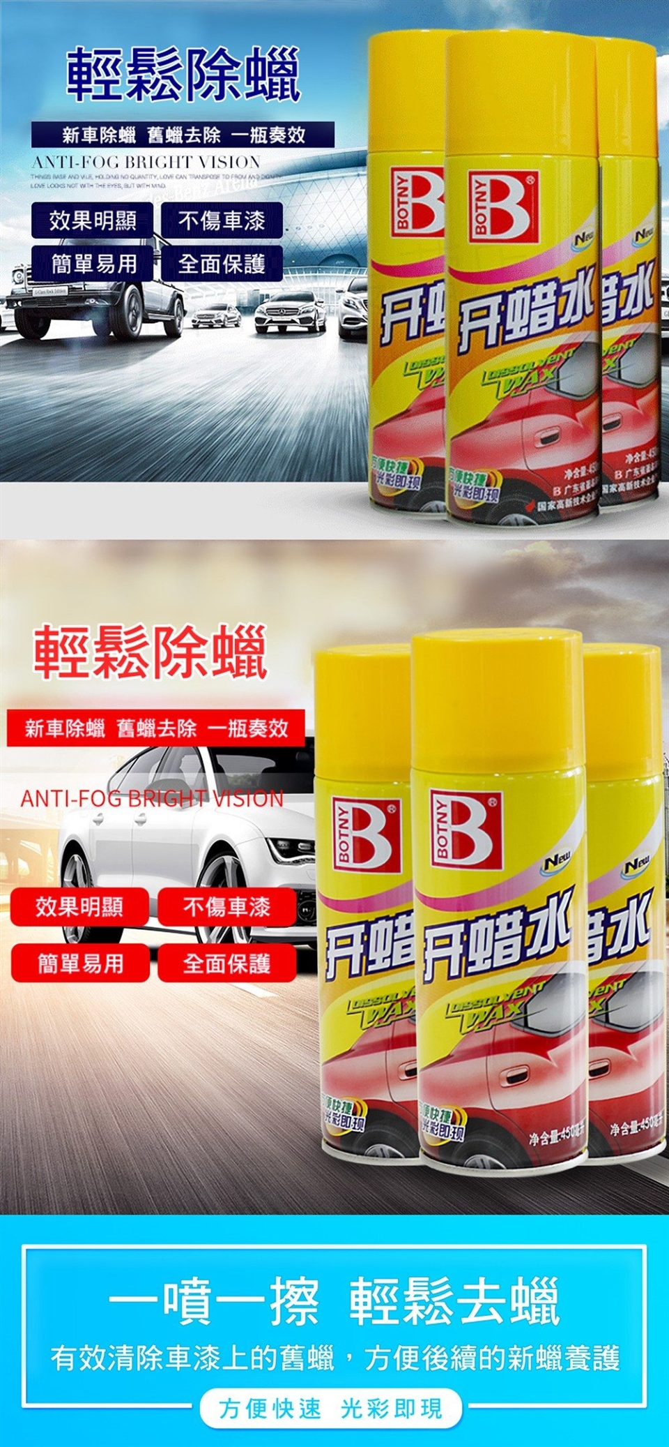 能快速清除車面的蠟污和蠟垢,使後續的上光工序潔淨、光彩、效果好,