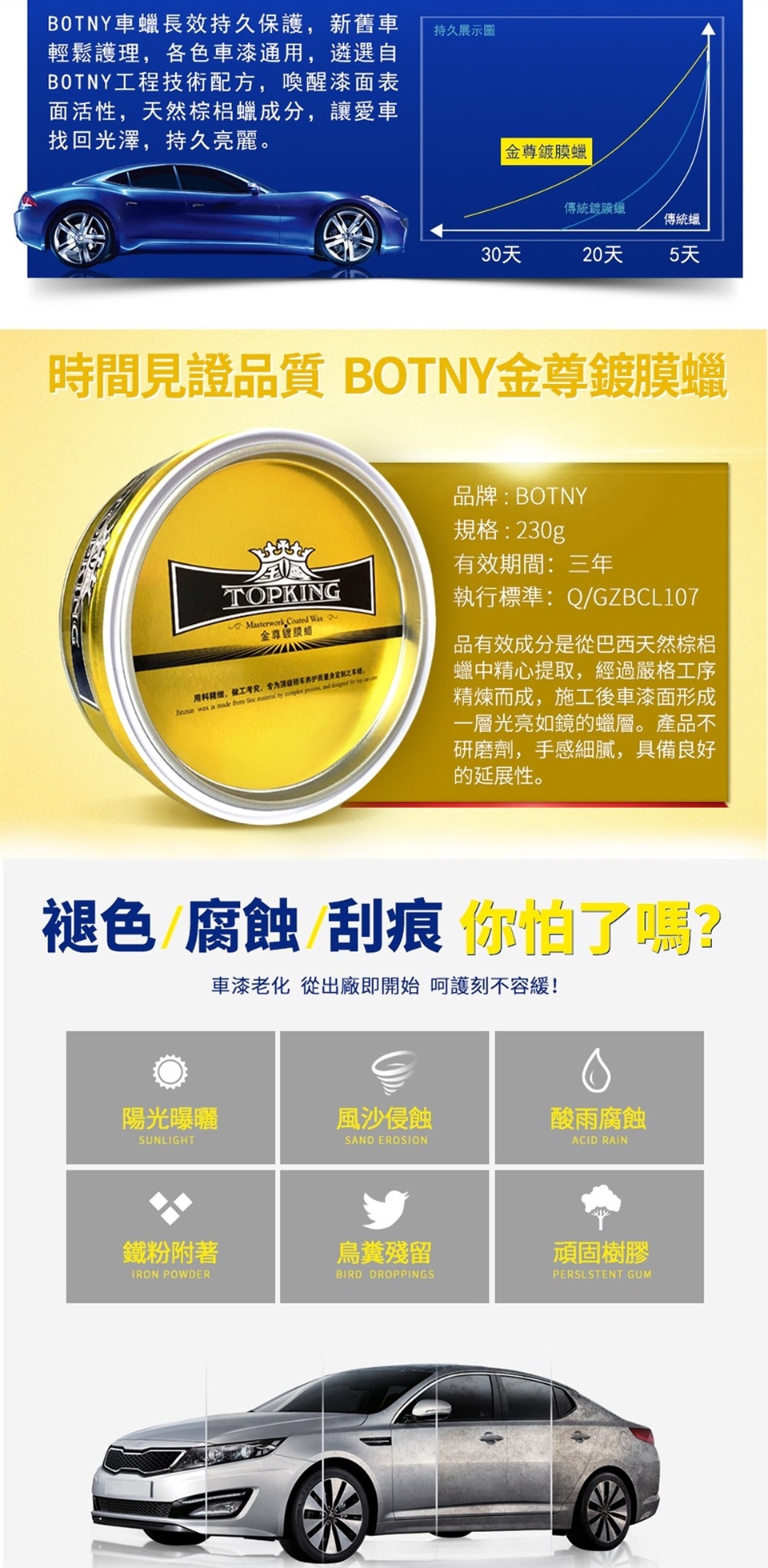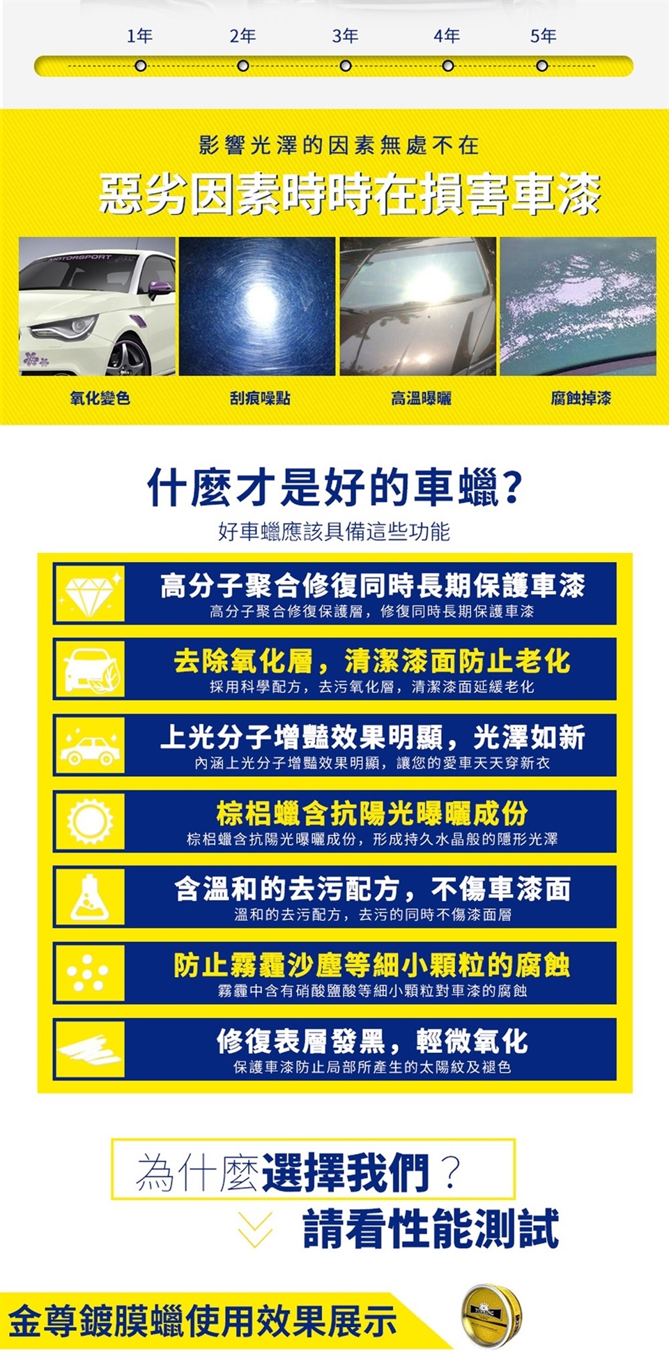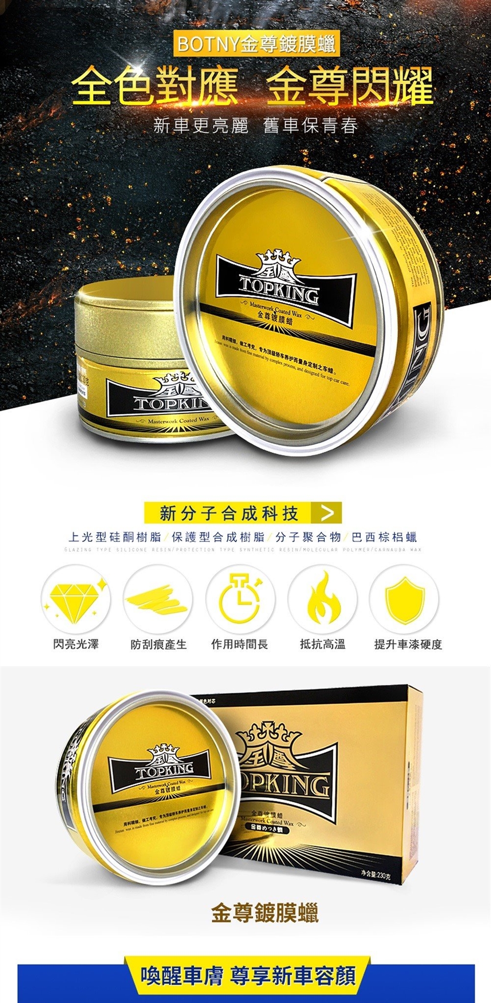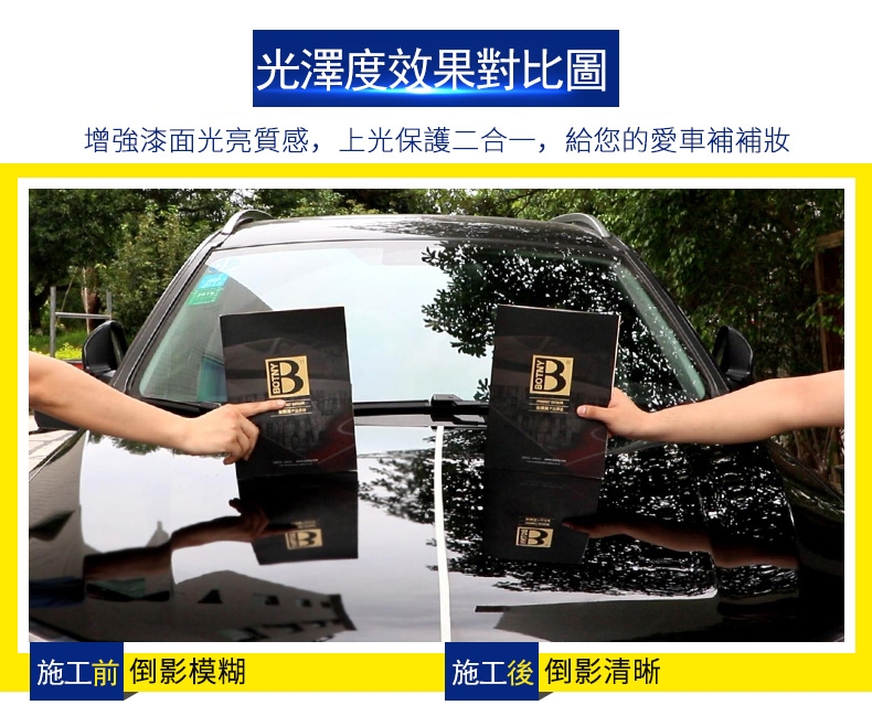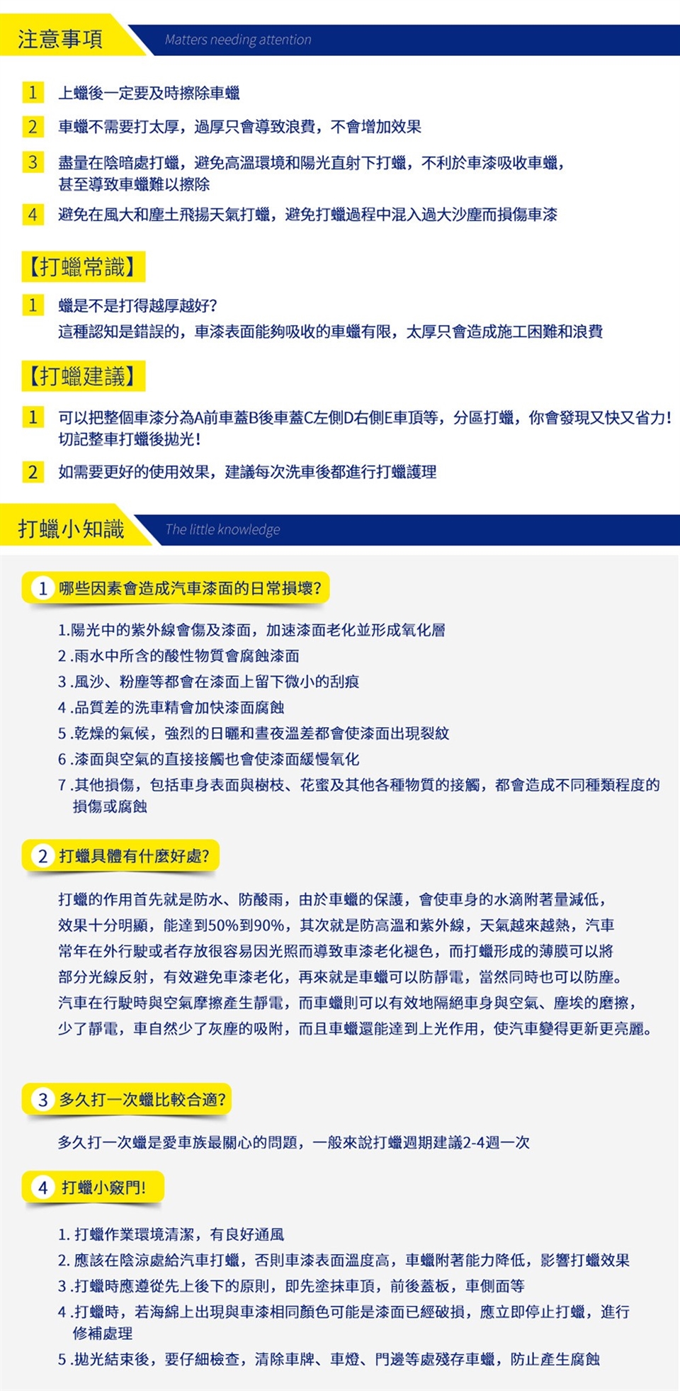 用料精細,做工考究,施工後在車漆表面會形成一層光亮如鏡的蠟層,