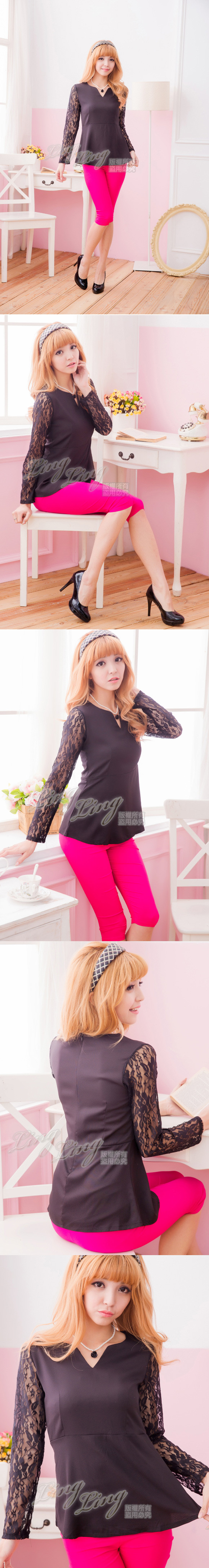 商品詳細介紹 仿如韓劇女主角的氣質美穿上這件上衣立即表露無遺~小V領的剪裁微微露出鎖骨散發著無法掩飾的女性魅力~蕾絲拼接的袖型,相當獨特不僅輕易的提升整體時尚感~若隱若現的白皙肌膚更迷人搭褲款或裙裝都顯魅力滿分!適合S-M號的女孩 使用方法說明 無 注意事項 如商品詳細說明