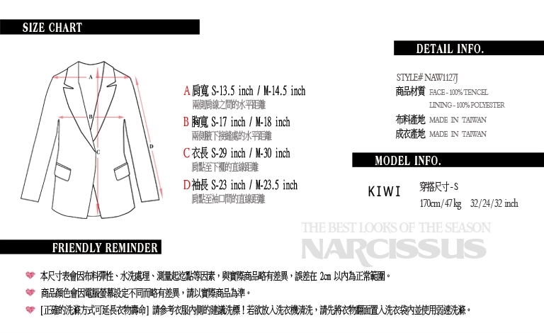 A. 本尺寸表會因布料彈性, 水洗處理, 測量起迄點等因素, 與實際商品略有