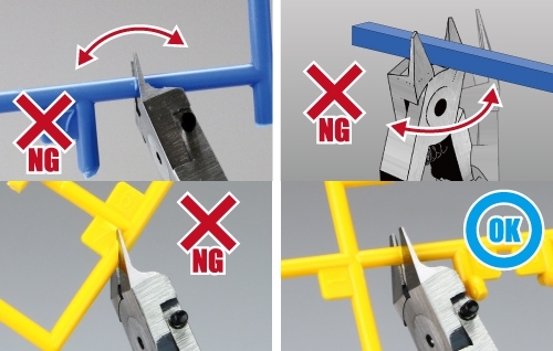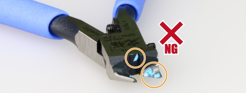 1.剪切塑料的過程中,請務必不要隨意改變剪鉗角度。(薄刃口無法承受橫向的力量,刀刃很可能會斷)