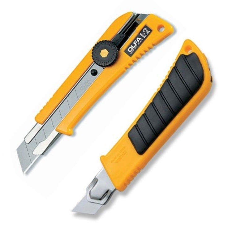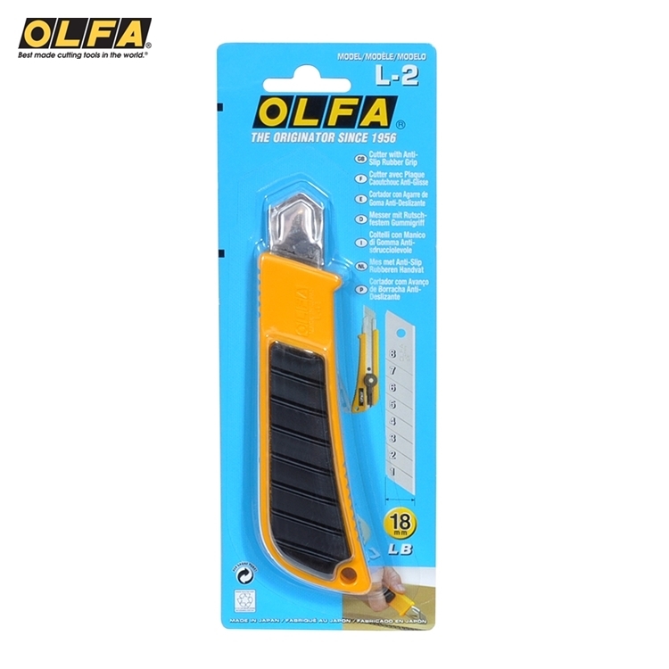 ●【品名】日本製造OLFA防滑橡膠握把大型美工刀大美工刀18mm替刃L-2型(螺栓式;適切割較厚紙板)榮獲GOOD DESIGN AWARD LONG SELLING的產品