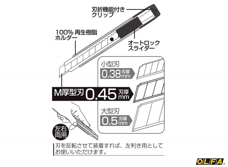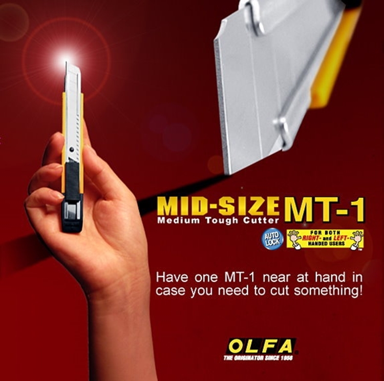 ●【品名】日本製造OLFA自動卡鎖中型美工刀MT-1型(左右手皆可;替刃12.5mm;日本型號203B美工刀)