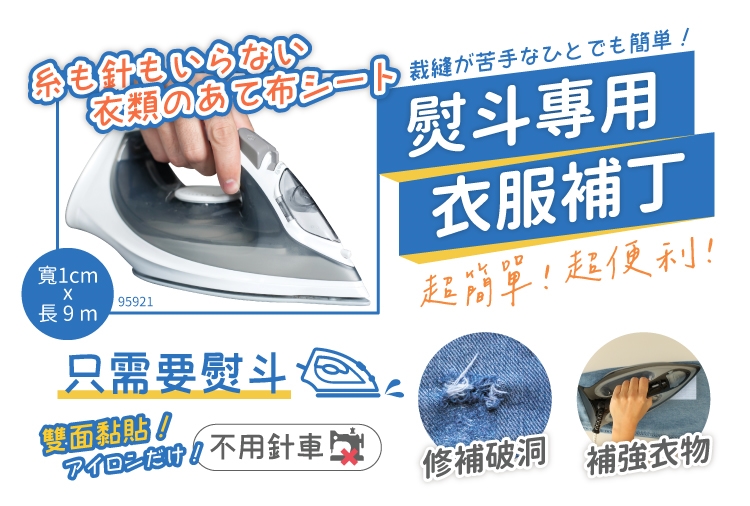 ●只需在布之間熨燙,即可輕鬆修補。