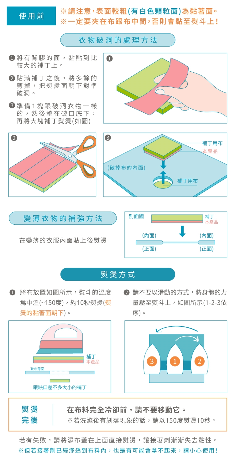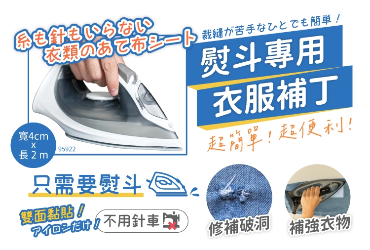●只需在布之間熨燙,即可輕鬆修補。