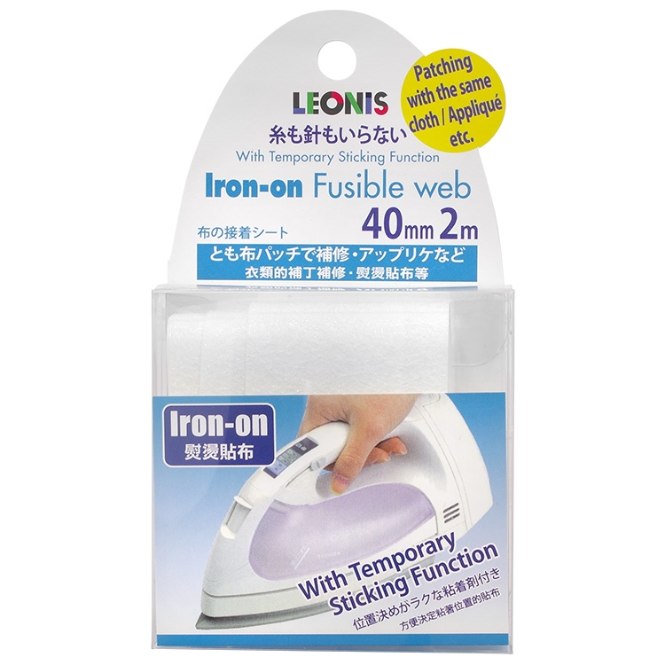 ●【品名】日本製LEONIS褲子衣服修補破洞強化貼燙斗貼布熨斗布貼免車縫貼95922透明無色(寬40mmx長2m)補丁黏性布粘膠紙膠布