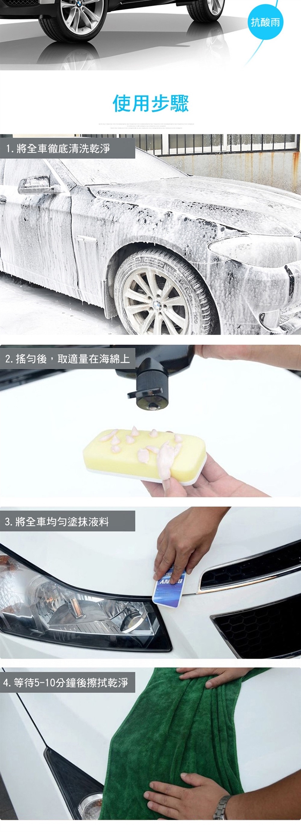 ●充分搖動罐內蠟液,用附內的海綿沾取適量蠟液薄塗車身,再用乾淨毛巾輕輕擦乾擦勻。