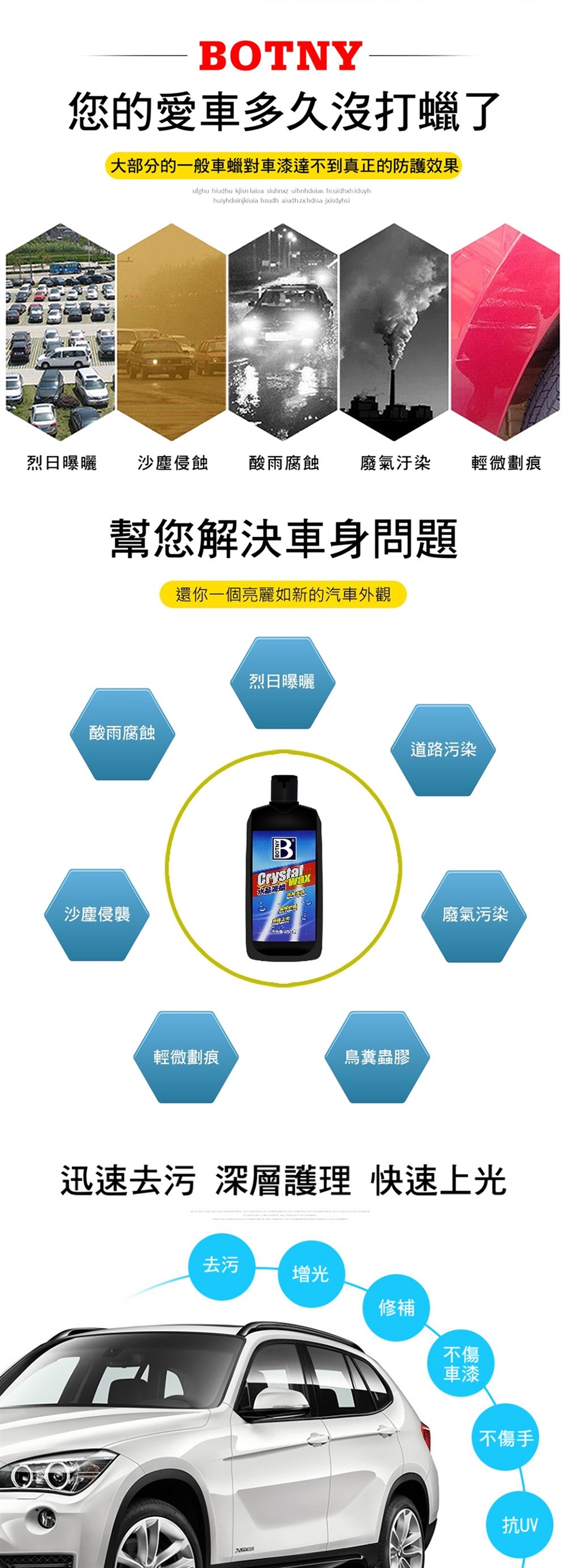 層堅固亮麗的蠟層,蠟層能防止漆面老化、龜裂及變色,並具有防水性能。