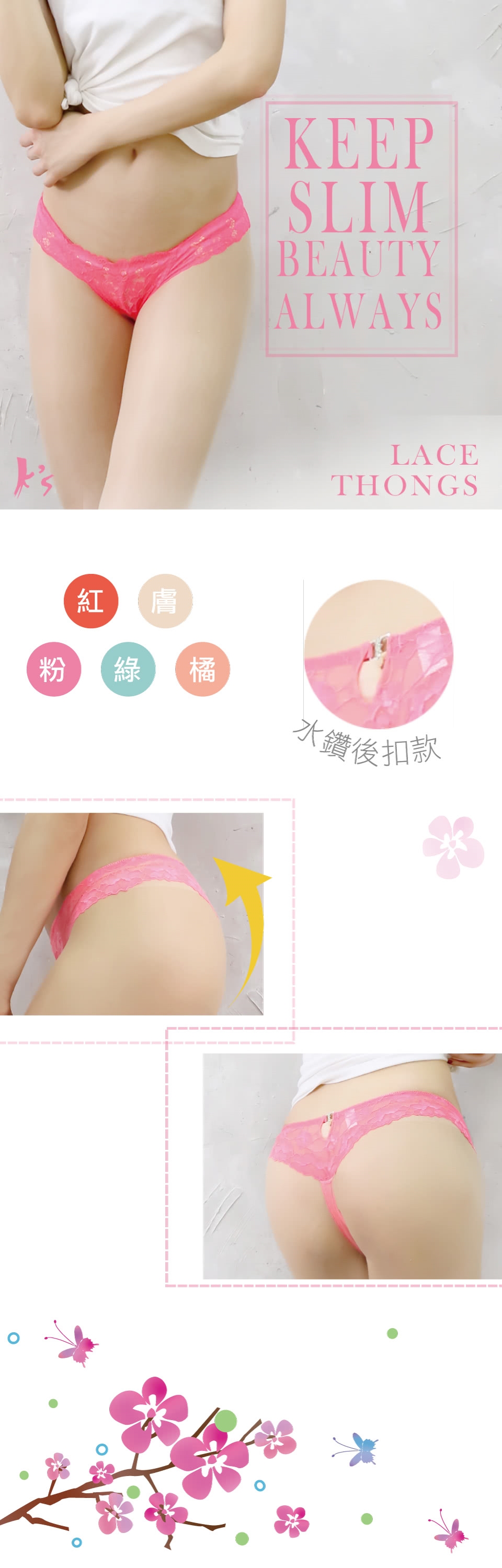 此款丁字褲蕾絲柔軟清透,舒適穿著感,透氣不悶熱!