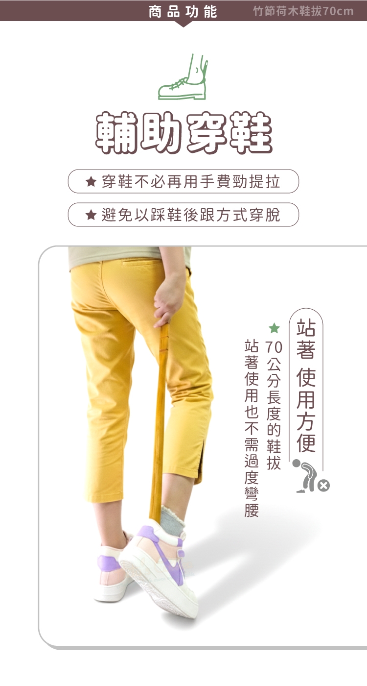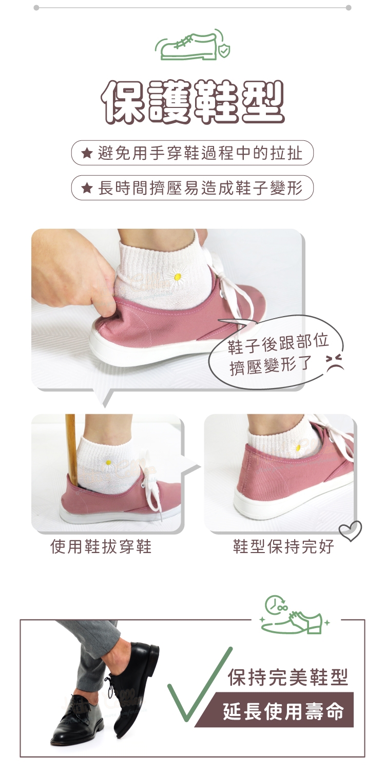 穿鞋不必再用手費勁提拉,避免以踩鞋後跟方式穿脫